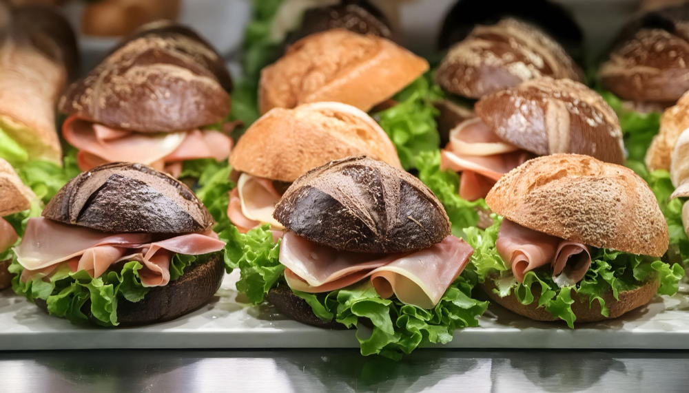 - Belegte Brötchen & Häppchenplatten – Frisch belegte Brötchen, liebevoll angerichtete Häppchenplatten und Canapés – perfekt für Empfänge, Stehbuffets oder als Snack zwischendurch.